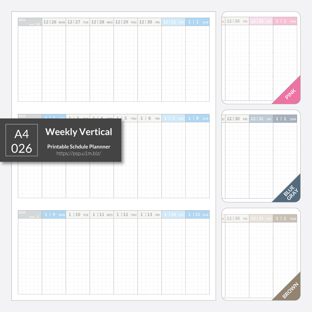【pdf de calendar】A4_026_週間バーティカル(3段)[A4,W/V,Mon]