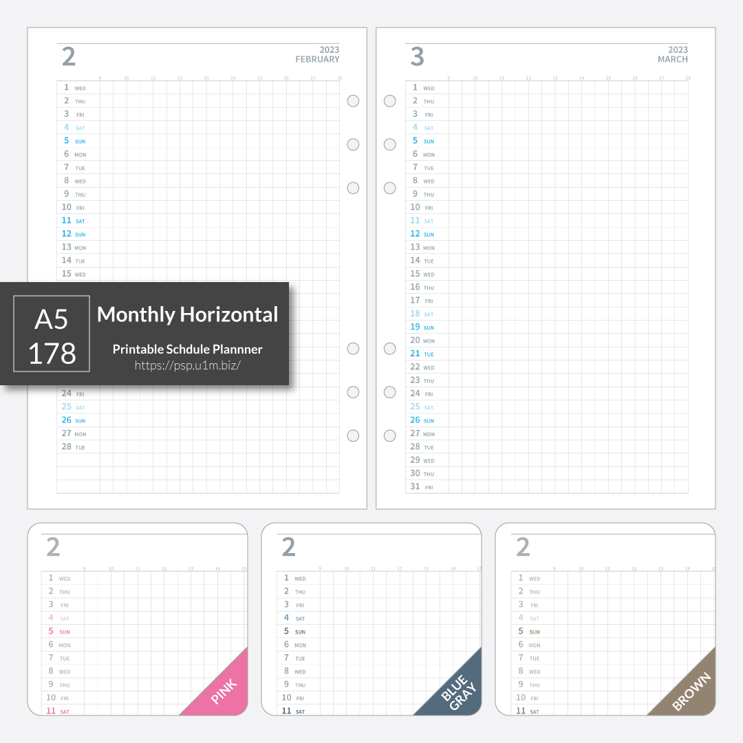 【pdf de calendar】A5_178_月間ホリゾンタル[A5,RL,M/H,T9-18]