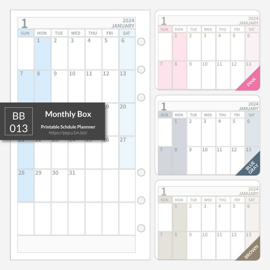 【pdf de calendar】BB_013_月間ボックス