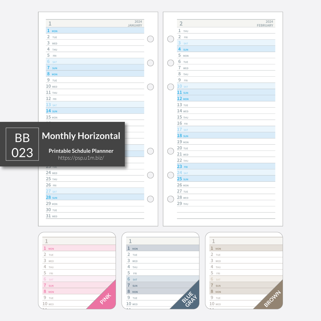 【pdf de calendar】BB_023_月間ホリゾンタル見開き2ヶ月