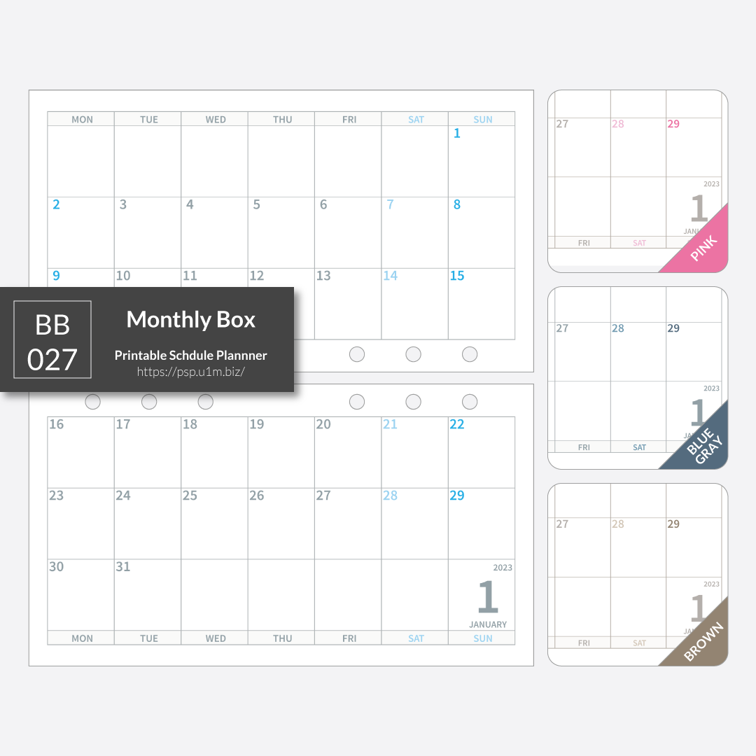 【pdf de calendar】BB_027_月間ボックス(横使い)[BB,LR,M/B,Mon]
