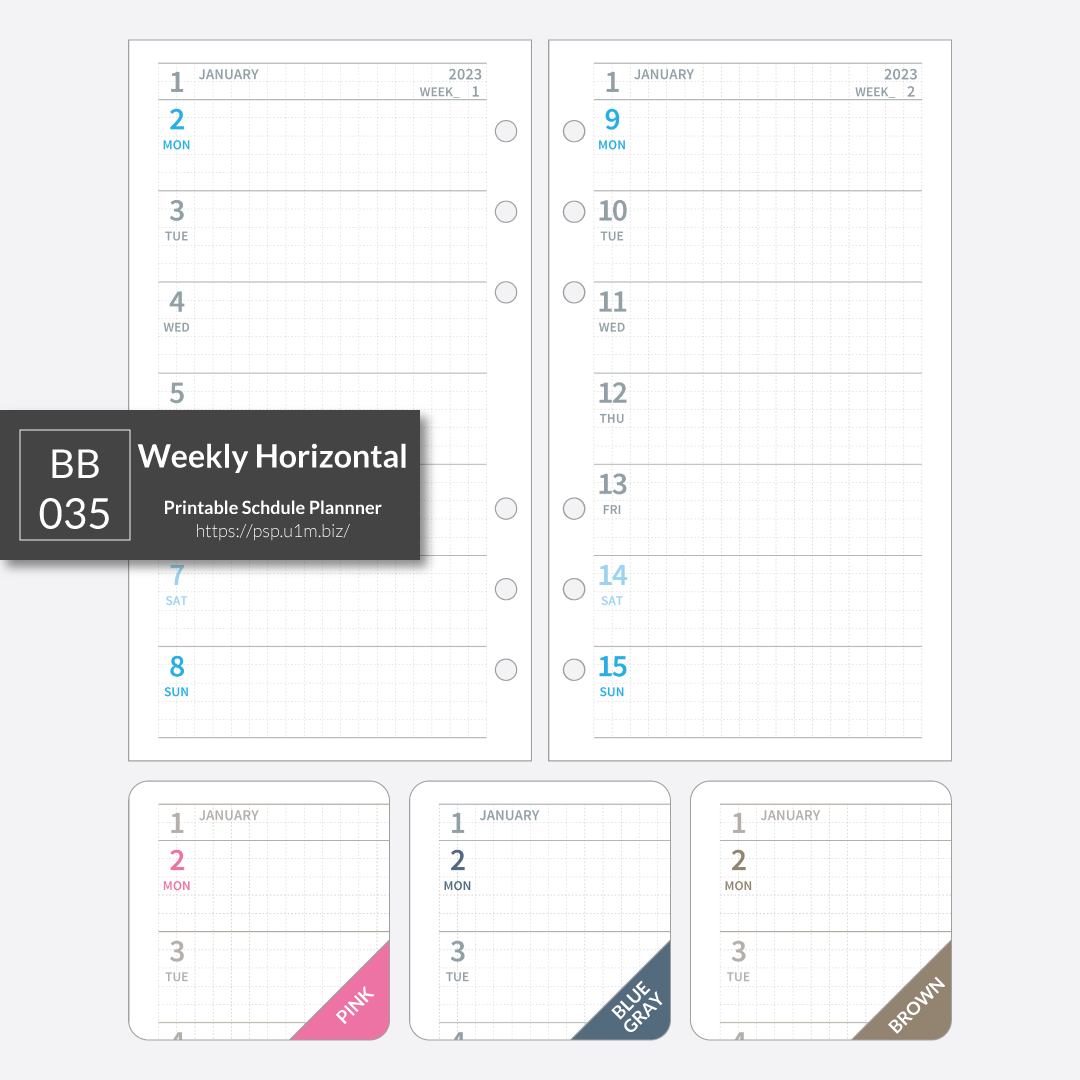 【pdf de calendar】BB_035_週間ホリゾンタル(見開き2週間)