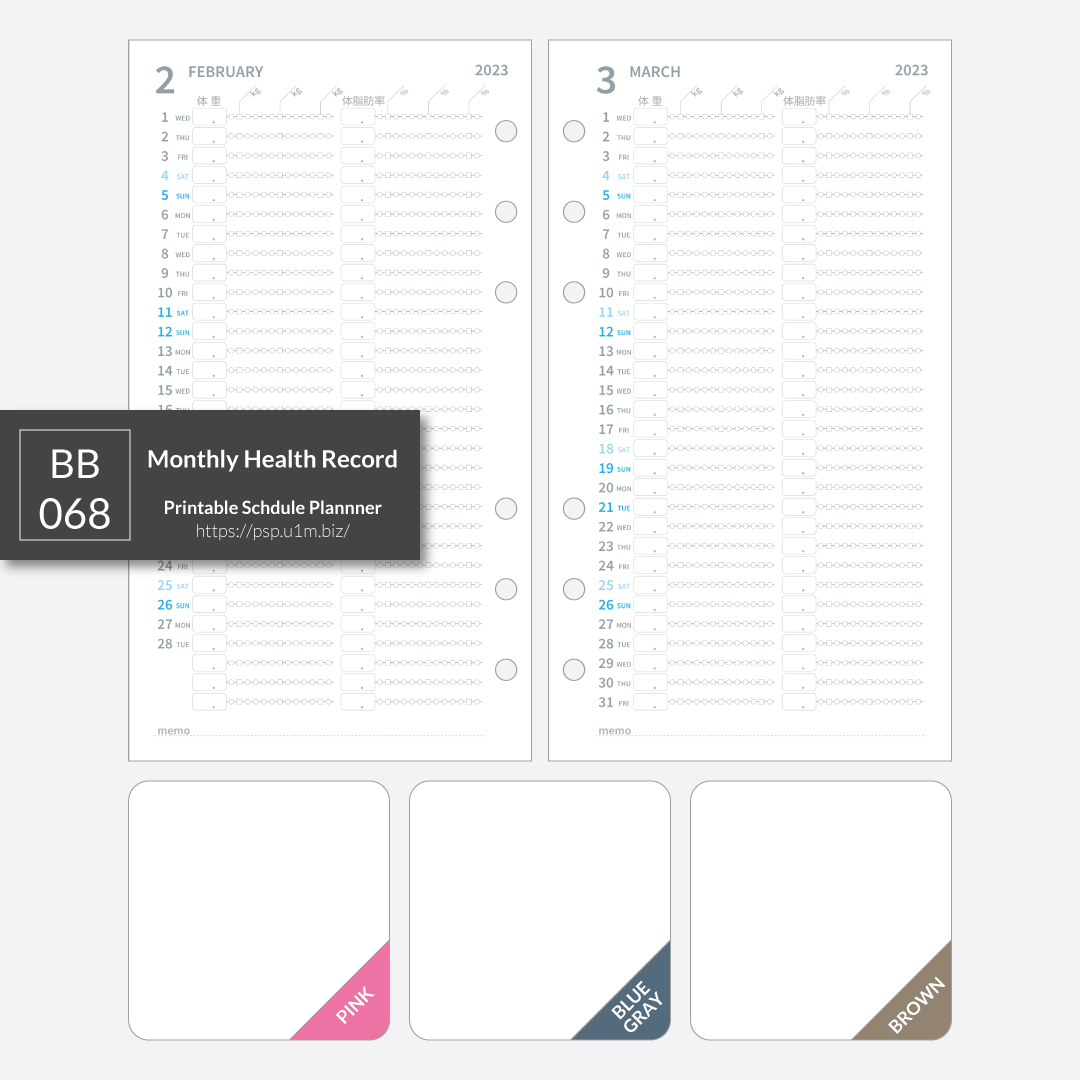【pdf de calendar】BB_068_体重+体脂肪記録シート[BB,RL,M/H]」