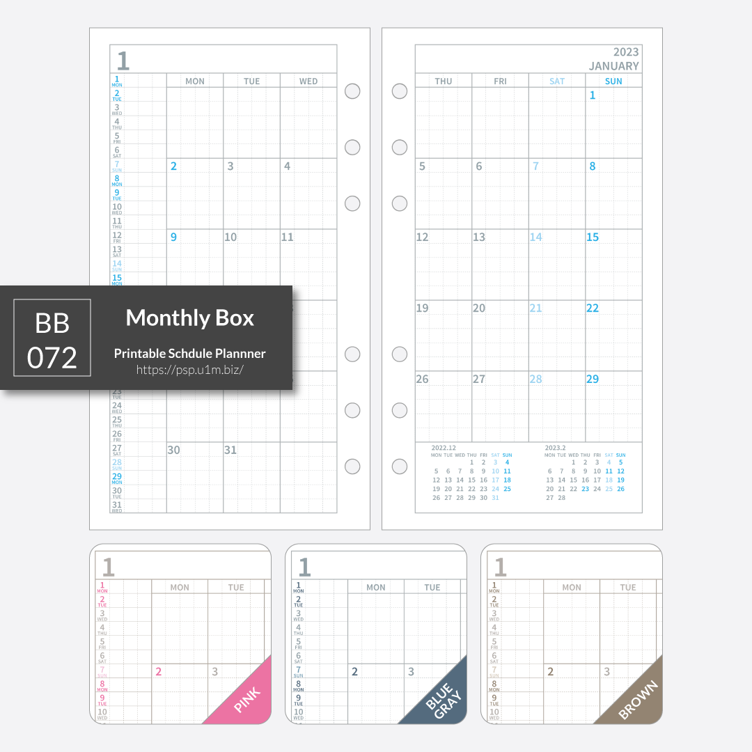 初めまして。今年から使わせてもらってます。現在は日曜始まりを使わせていただいてるのですが、月曜はじまりの方がいいなと思ったのでこちらをリクエストさせていただきます。BB_072 Monthly Box Planner2026年版よろしくお願いいたします。