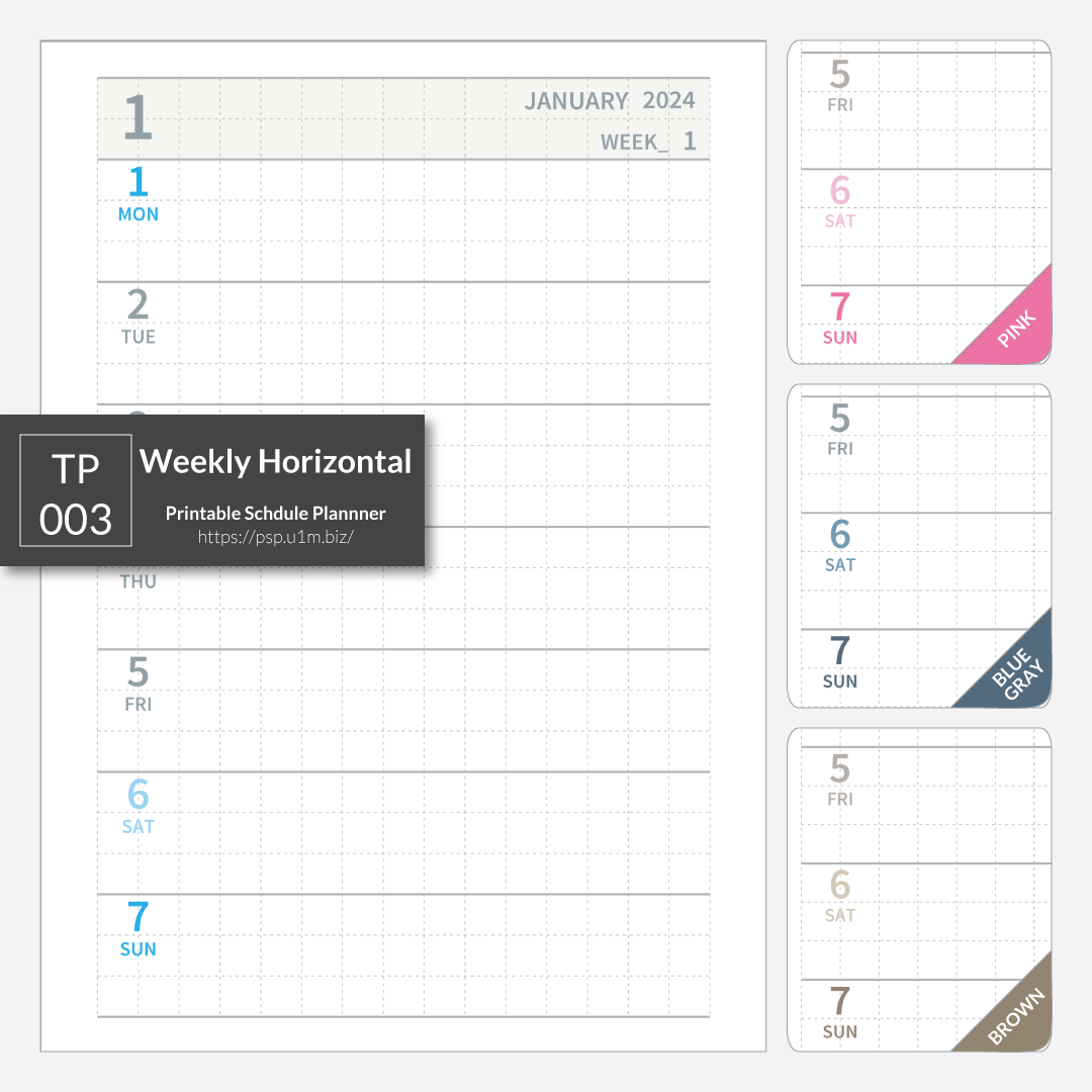 【pdf de calendar】TP_003_週間ホリゾンタル