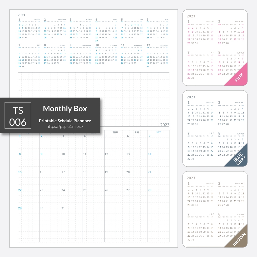 【pdf de calendar】TS_006_月間ボックス(メモ付き)