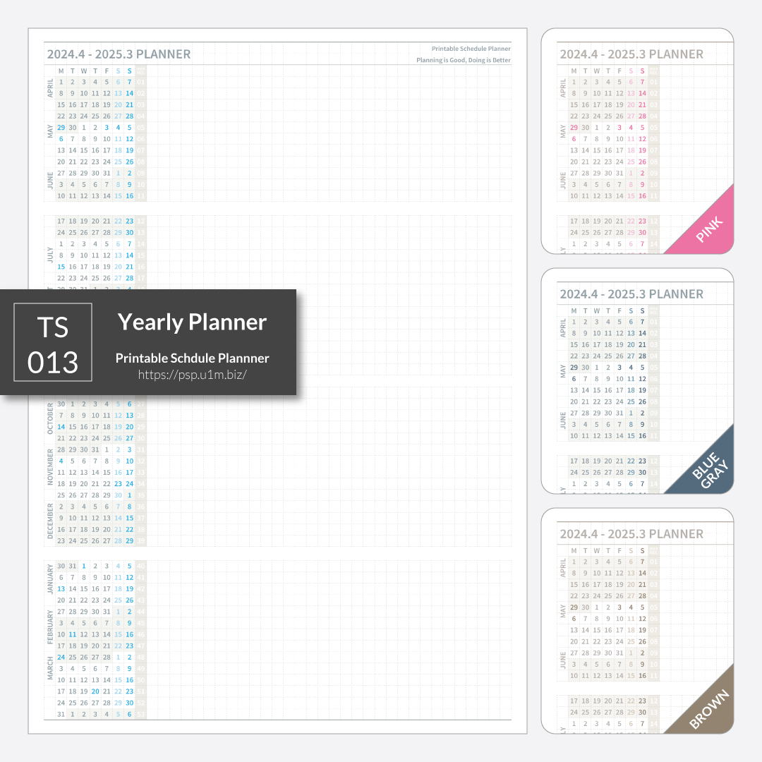 【pdf de calendar】TS_013_年間計画シート(4月はじまり)